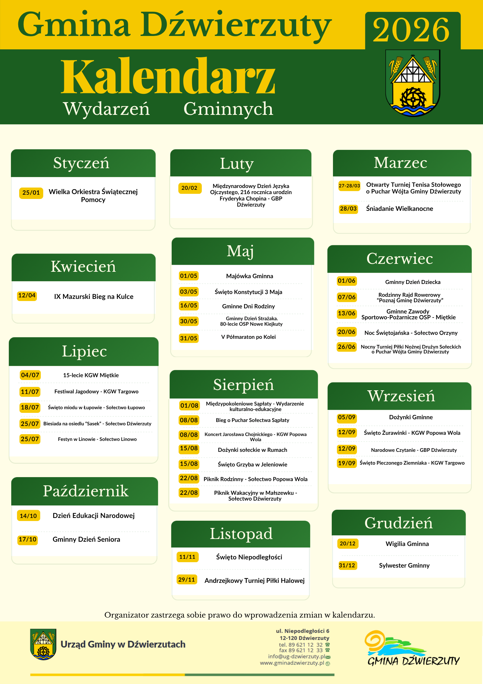 Kalendarz wydarzeń gminnych 2026
